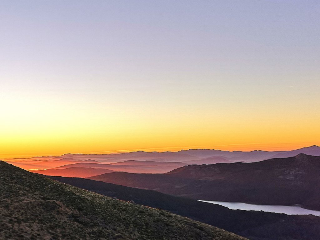 En la puesta de sol los colores inundan el paisaje y dibujan un mar de montañas