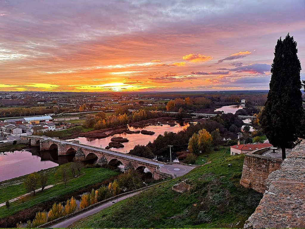 El castillo y la muralla se convierten en un privilegiado balcon donde se domina el puente sobre el río Agueda